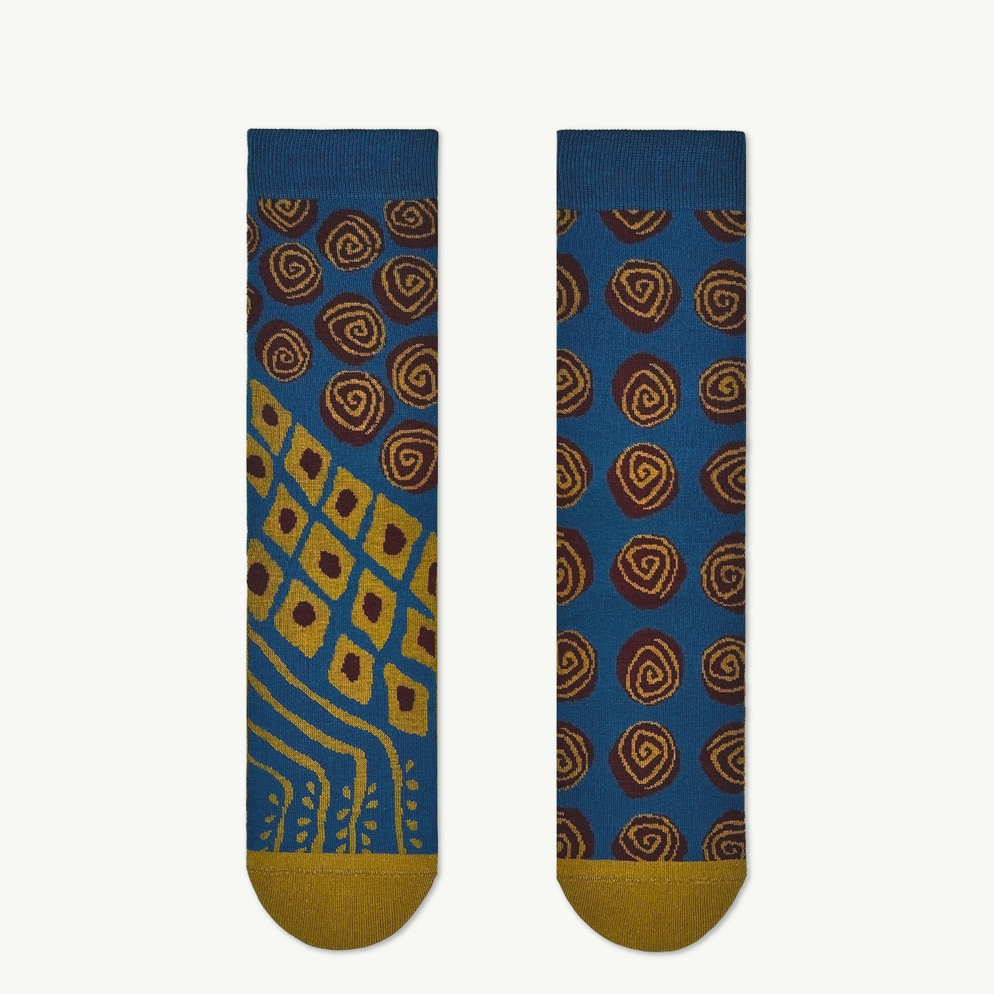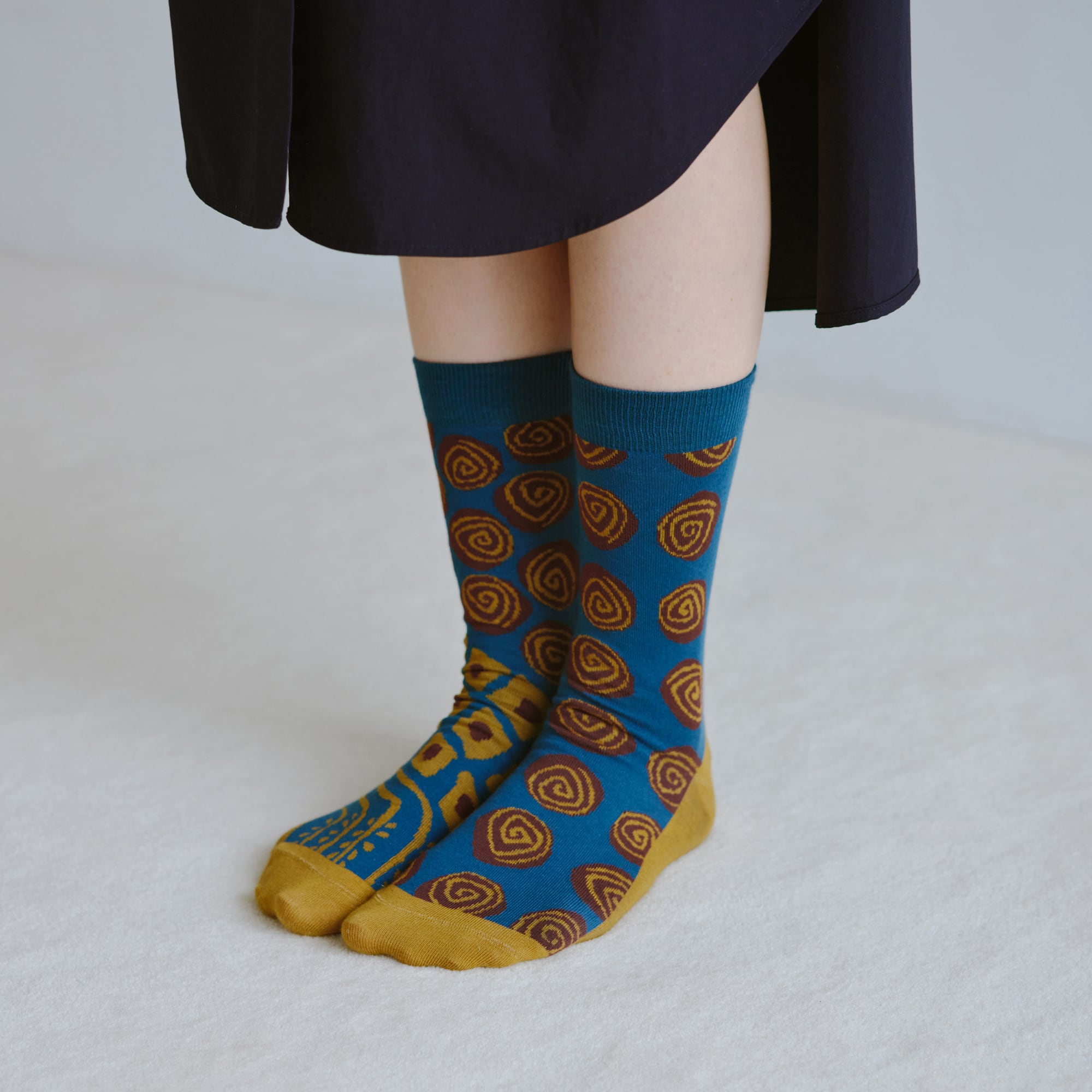 もう片足は、深みのあるブルーにブラウンの渦巻き模様が全体に広がり、
